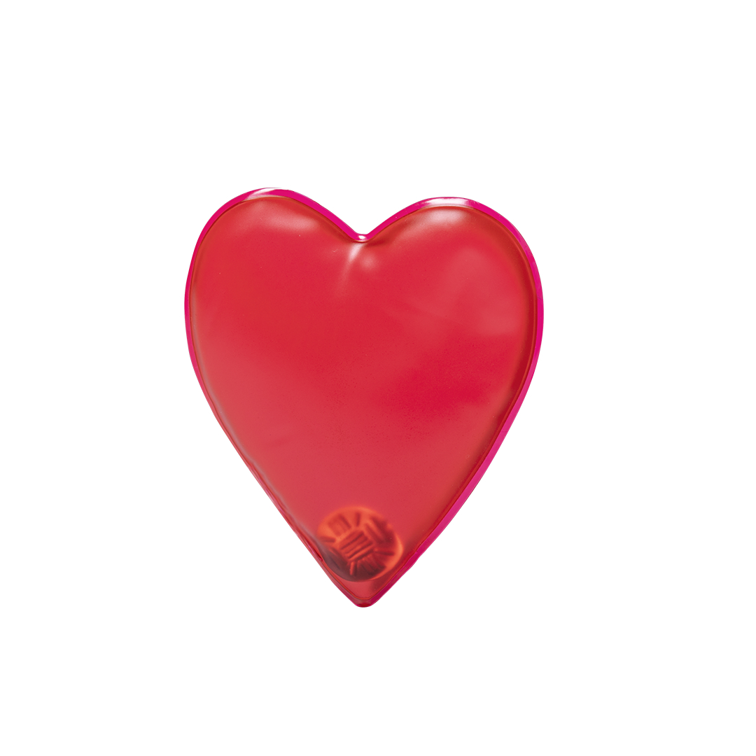 Parche térmico con diseño corazón. Reutilizable y con efecto calor de duración prolongada. Se activa doblando la chapa metálica para que el parche se endurezca y se caliente. Para reutilizar, se calienta agua en un recipiente con el parche dentro hasta que el gel interior vuelva a su estado líquido, presionando la chapa metálica de nuevo. Disponible manual de instrucciones en español e inglés.